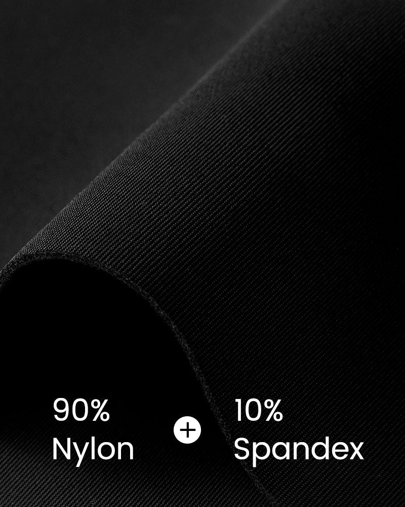 90% Nylon 10% Spandex body 100% Cotton crotch. Specifically use reinforced stitching instead of glue or laser cut to enhance the tummy control in the waist. Therefore, THE BOTH SIDES OF WAIST IS NOT COMPLETELY SEAMLESS. But you also can't see the panty line on the butt.